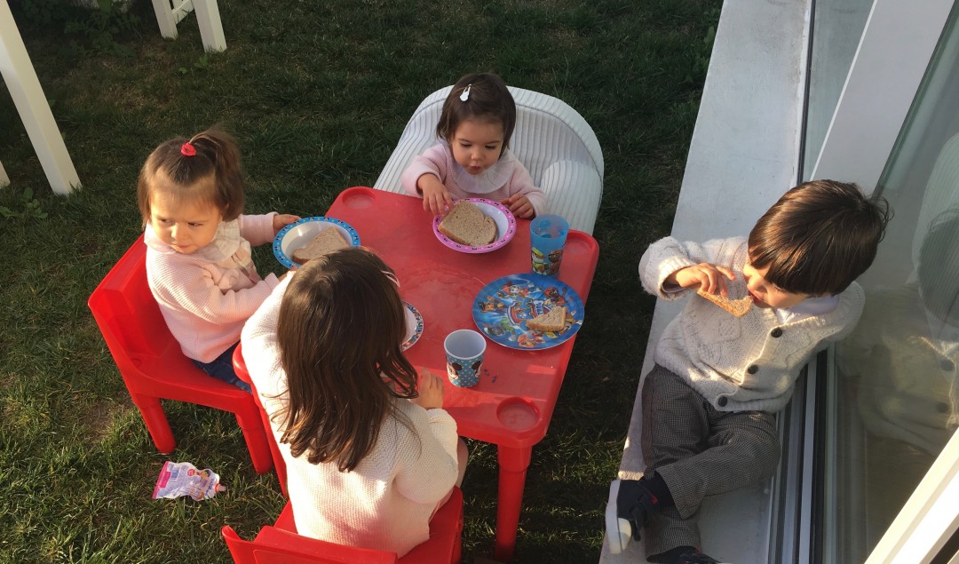 As gémeas tiveram muita sorte porque lancharam duas vezes, uma vez sozinhas e outra quando os manos chegaram da escola, não imaginam a alegria destas miúdas a comer, ficam radiantes!!!